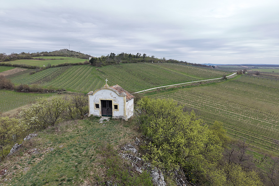 Zur Anlage gehört auch eine einfache Kapelle, oft als Abendmahlskapelle bezeichnet, die den spirituellen Mittelpunkt dieses Kreuzberg-Areals bildet. Sie fügt sich in die felsige Landschaft ein und steht in engem Zusammenhang mit weiteren religiösen Elementen wie einer Mariengrotte in der Nähe. Insgesamt vermittelt der Kreuzberg mit seiner Kapelle einen Eindruck von Volksfrömmigkeit und religiöser Tradition, wie sie im Weinviertel über Jahrhunderte gepflegt wurde.