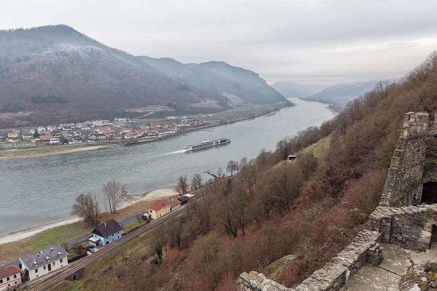 Die Ruine Hinterhaus erhebt sich weithin sichtbar auf einem steilen Felsrücken oberhalb des Marktes Spitz an der Donau und zählt zu den markantesten mittelalterlichen Wehranlagen der Wachau. Ihre Lage hoch über dem Donautal ist nicht nur landschaftlich eindrucksvoll, sondern erklärt auch ihre ursprüngliche Funktion: Die Burg diente der Kontrolle des Donaustroms, der Handelswege und des umliegenden Territoriums und war damit ein wichtiger Macht- und Verwaltungsstützpunkt im mittelalterlichen Niederösterreich.