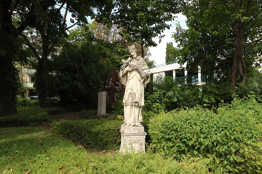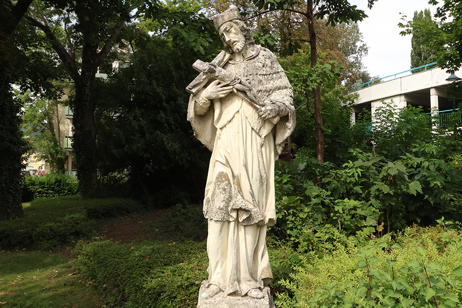 Statue des Heiligen Nepomuk in der Gutenbrunner Straße in Baden. Die Figur stammt aus dem Jahr 1724.