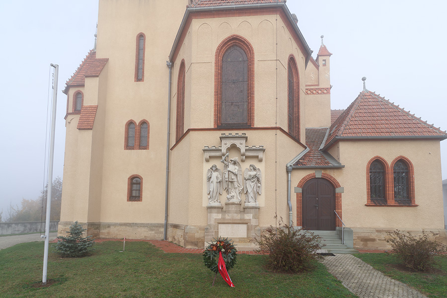 An der Südseite der Pfarrkirche Hl. Bartholomäus in Katzelsdorf steht eine Figurengruppe mit den Erzengeln Michael, Gabriel und Rafael. Sie wurde von Magdalena Kersch gestiftet und erinnert an die Opfer des Ersten Weltkriegs.