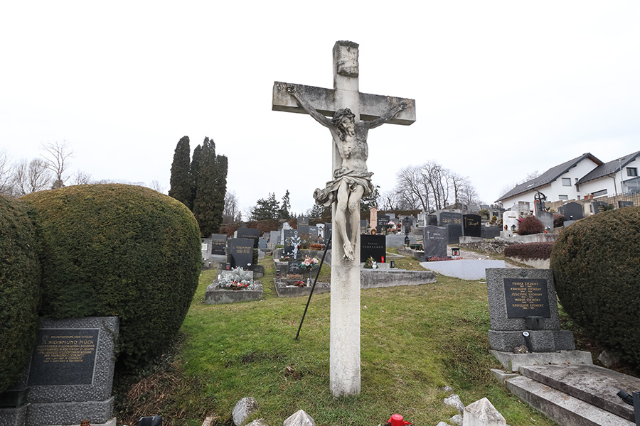 Das Friedhofskreuz in Breitenfurt bei Wien, auch „Giuliani-Kreuz“ genannt, ist ein barockes Steinkruzifix auf dem Friedhof des ehemaligen Armenspitals in der Stelzerbergstraße 15. Das Kreuz zeigt den gekreuzigten Christus in ausdrucksstarker, bewegter Haltung, wie sie für die barocke Bildhauerei typisch ist. Der Körper ist anatomisch sorgfältig modelliert, das Haupt mit Dornenkrone leicht zur Seite geneigt, und das Lendentuch fällt in lebhaften, weich gearbeiteten Falten. Die plastische Durchbildung und die emotionale Darstellung verleihen der Figur eine eindringliche spirituelle Wirkung und machen das Werk zu einem qualitätvollen Beispiel barocker Frömmigkeitskunst in Niederösterreich.