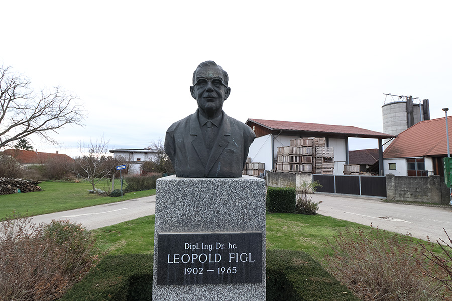 In Rust im Tullnerfeld steht eine Büste von Leopold Figl, die an den bekanntesten Sohn des Ortes erinnert. Die Büste ist im öffentlichen Raum aufgestellt und bewusst als sichtbares Zeichen des historischen Andenkens gestaltet. Die Porträtbüste zeigt Figl in ruhiger, würdevoller Haltung. Der Blick ist nach vorne gerichtet, die Gesichtszüge sind realistisch und konzentriert ausgearbeitet – weniger idealisierend als vielmehr staatsmännisch und menschlich. Die Darstellung betont Figls Charakter als besonnener, standhafter Politiker der frühen Zweiten Republik.