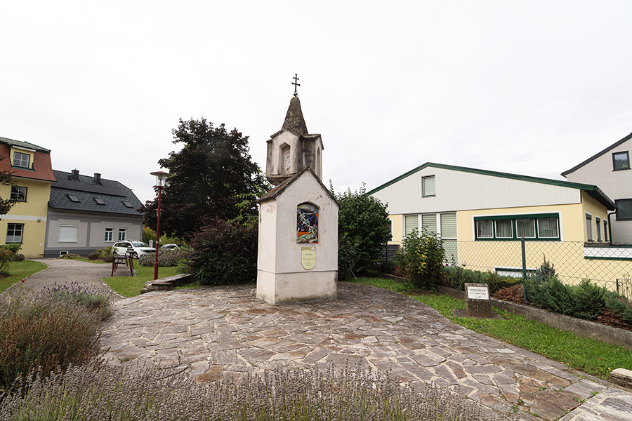 Pestsäule in Pitten. Das Denkmal wurde im 18. Jahrhundert in Erinnerung an die Pest errichtet, die Pitten mehrmals heimsuchte. Die Basis trägt ein Relief von Sepp Bucher, das eine nackte Frau sowie den Tod in Gestalt eines Gerippes zeigt. Darüber erhebt sich ein quaderförmiger Aufsatz mit einem Eisenkreuz. In den Nischen sind die Pestheiligen Sebastian, Rochus und Rosalia dargestellt.