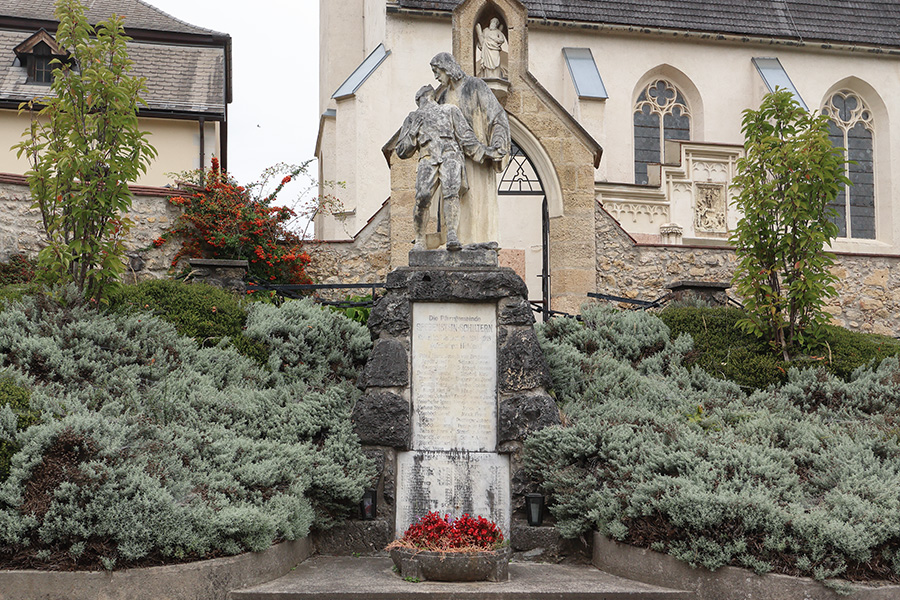 Kriegerdenkmal Seebenstein. Beim Aufgang zur Pfarrkirche St. Andreas in Seebenstein steht das Kriegerdenkmal zum Gedenken an die Gefallenen der Weltkriege. Das aus Stein gefertigte Denkmal zeigt eine Darstellung Christi mit einem Soldaten – ein Motiv, das Trost, Opferbereitschaft und Hoffnung symbolisiert. Es wurde als Ehrenmal für die im Krieg gefallenen Männer der Gemeinde Seebenstein errichtet und bildet gemeinsam mit der Kirche und dem Kirchhof ein stimmungsvolles Ensemble im historischen Ortskern.