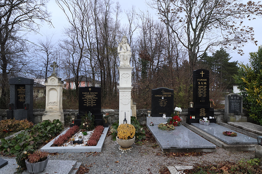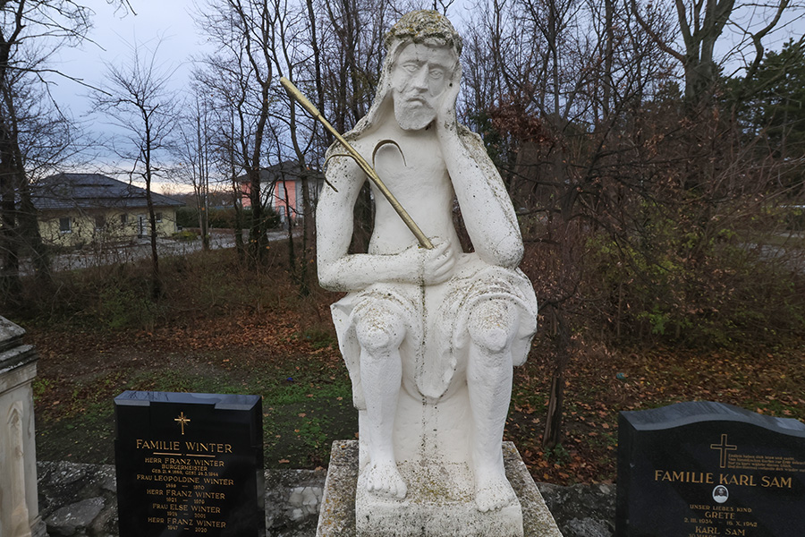 Sitzfigur des Schmerzensmannes am Friedhof von Seibersdorf. Das Denkmal stammt aus dem Jahr 1664.