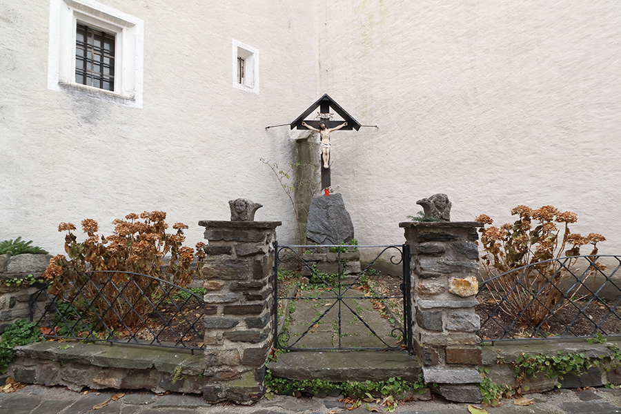 Cherubkopf an der Einfriedung zum Kruzifix bei der Pfarrkirche Hl. Mauritius in Spitz an der Donau. Die beiden Köpfe wirken wie kleine apotropäische Wächterfiguren – still, aber aufmerksam. Besonders auffällig ist der ernste, fast strenge Ausdruck, der sich deutlich von den oft lieblichen Barock-Putten unterscheidet.
