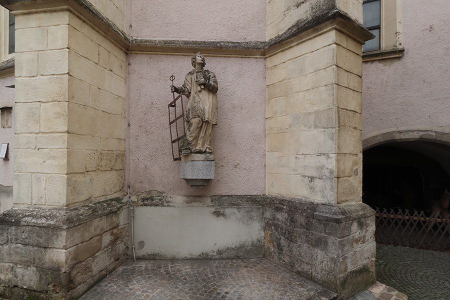 An der Südseite der Kirche in Ybbs an der Donau befindet sich eine aus der ersten Hälfte des 18. Jahrhunderts stammende Statue des Kirchenpatrons Laurentius mit dem Rost. Der Rost ist sein traditionelles Attribut und verweist auf sein Martyrium: Der heilige Laurentius wurde der Überlieferung nach im 3. Jahrhundert auf einem glühenden Rost zu Tode gefoltert und gilt seither als Sinnbild für Standhaftigkeit im Glauben.